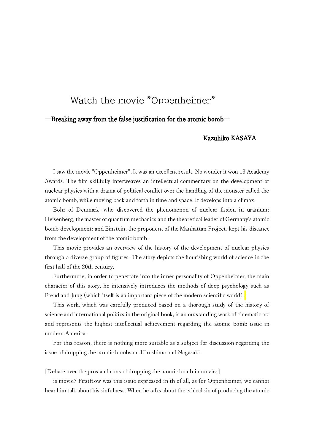 オッペンハイマーの英文 2024.08.062024.12.19 オッペンハイマーの英文 下記にご紹介しております新聞記事の英訳文です。海外の皆様に広く発信して頂ければ幸いです。 Watch the movie -Oppenheimer-2024.8.7ダウンロード ↑スマートフォンの方は、クリックすると記事の閲覧が可能です。